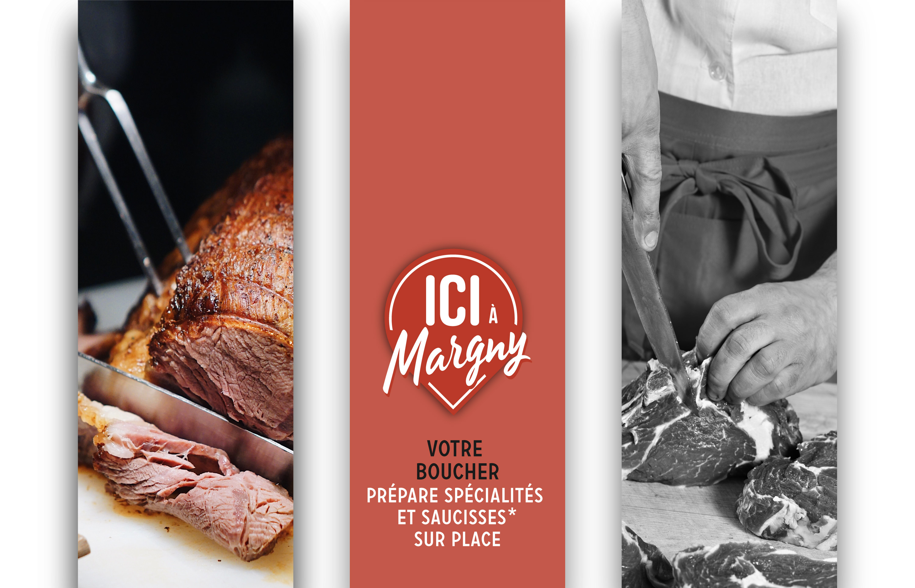 En complément du travail sur son identité « Ici à Margny », le magasin se fait peau neuve avec une signalétique qui exprime le savoir-faire des métiers, le fait sur place.